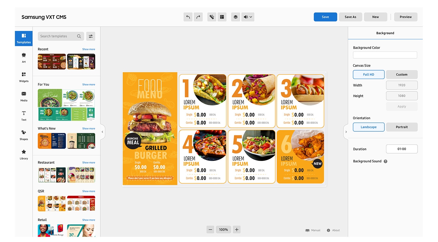 The cloud-based Samsung VXT brings together content management and remote device management capabilities, allowing you to remotely manage hardware settings and troubleshoot issues while effortlessly creating and deploying content with no previous training needed.